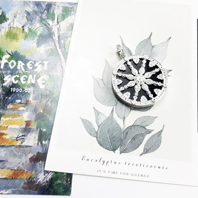 925er Silber Anhänger – Schwarzes Kristallrad „Karma Wheel” – Thomas Sabo Style