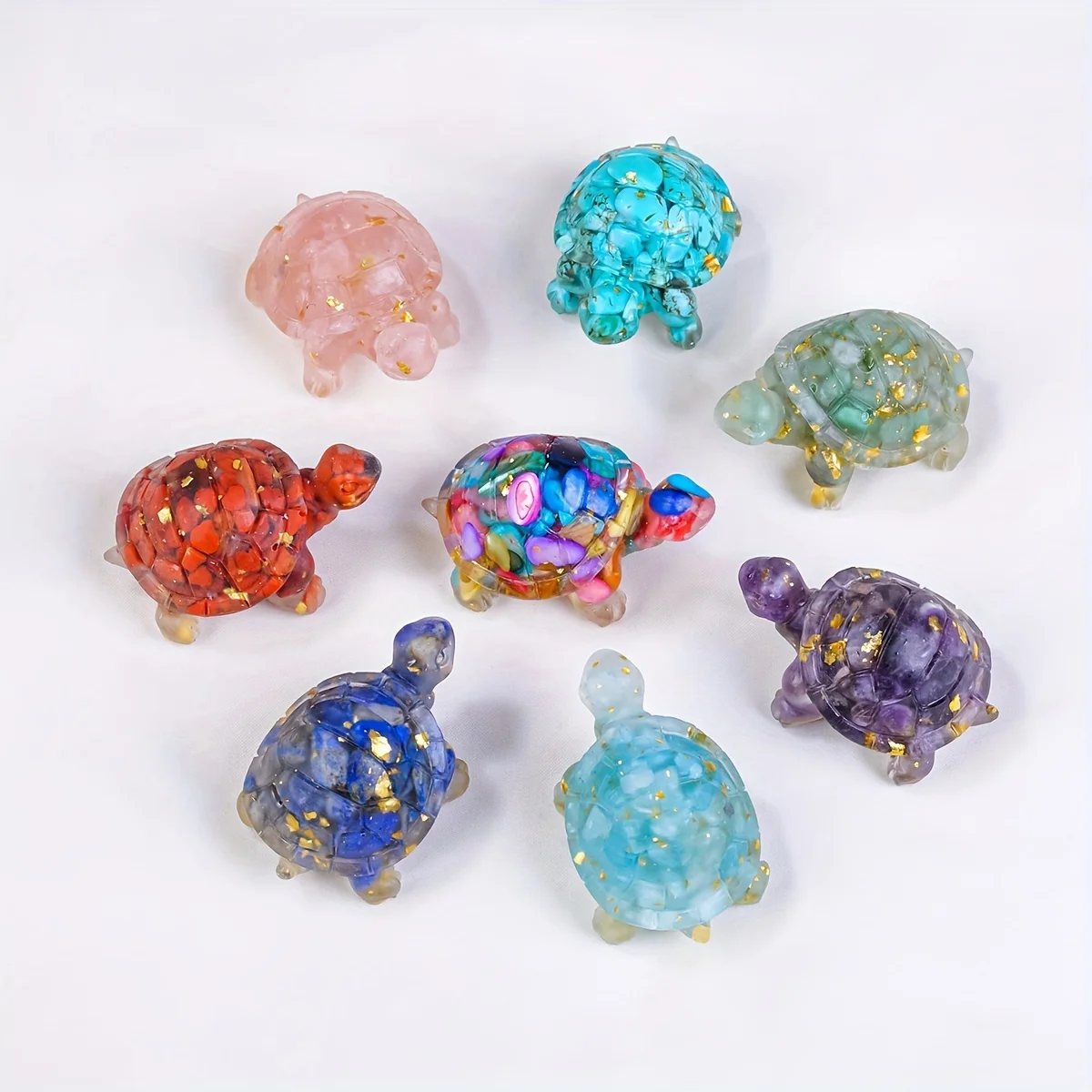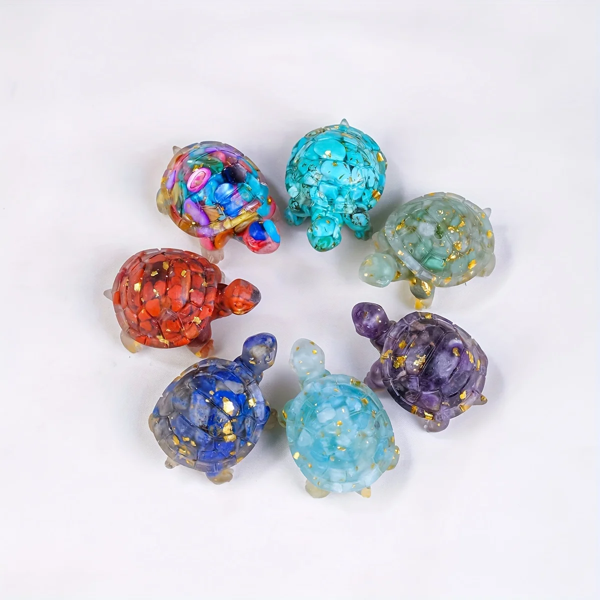 Diese kleine Schildkröte besteht aus Harz mit eingearbeiteten Naturstein-Chips. Die Schildkröte steht seit Jahrhunderten für Schutz, Beständigkeit und ruhige Entwicklung. Durch die Kombination aus Form und Steinenergie eignet sie sich ideal für Meditations- und Ruhebereiche.